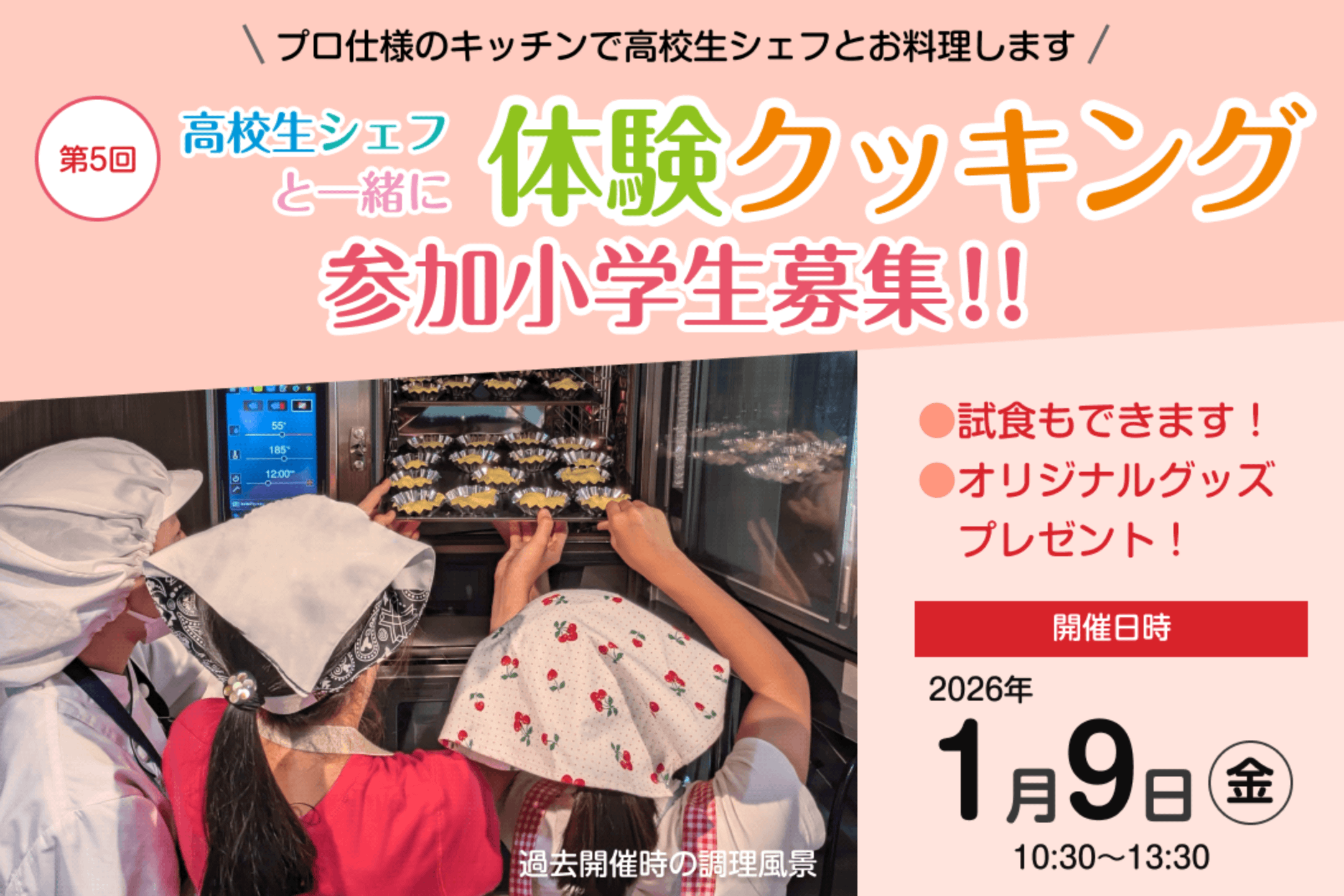お知らせ 【参加小学生募集】高校生シェフと一緒に体験クッキング(1月9日開催)NEW!